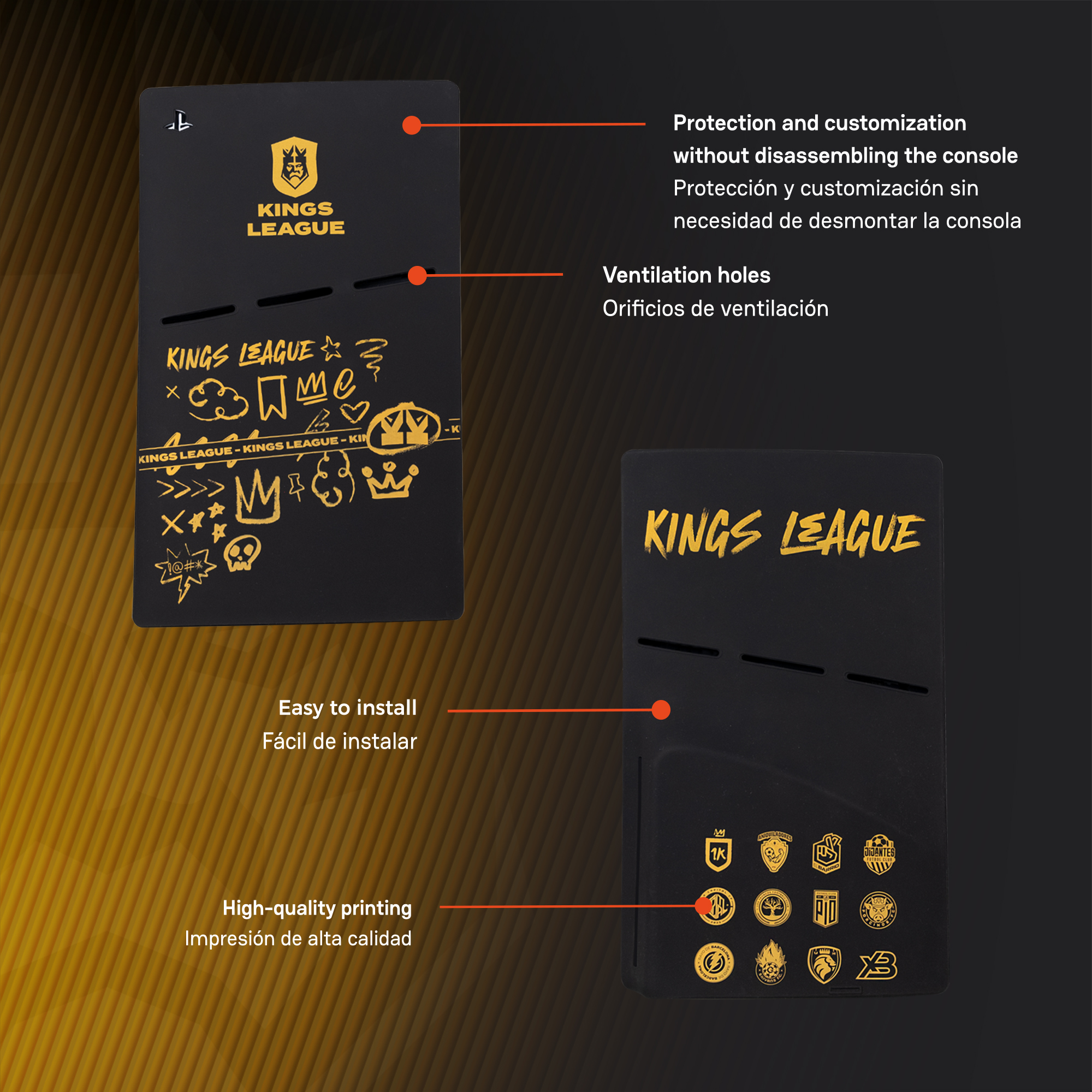 Give your console a complete makeover with the official Kings League seal. Includes teams from presidents such as Perxitaa, Ibai, Lamine Yamal, and many more.